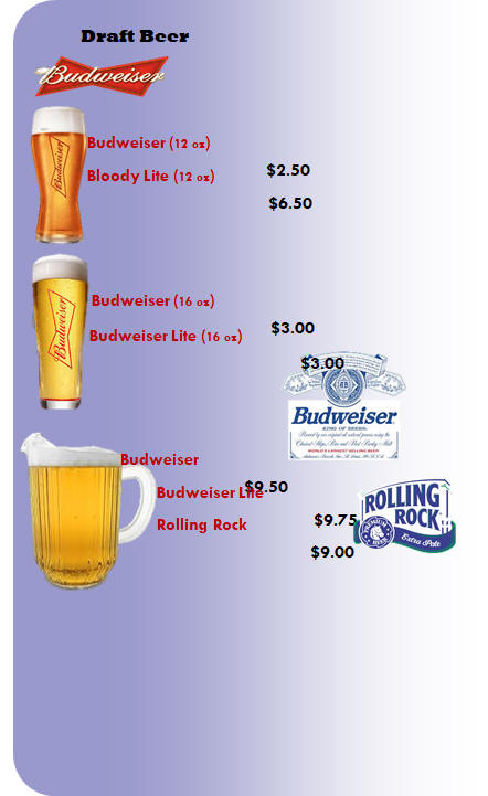 Sample Drink Menu